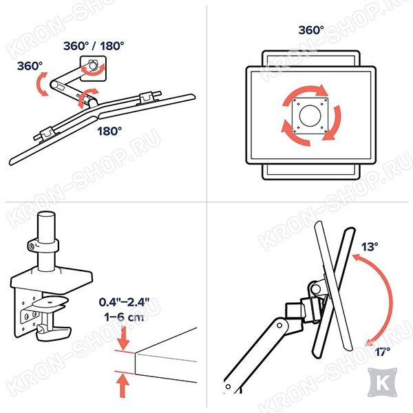 крепление поворачивается на 360° вправо/влево;