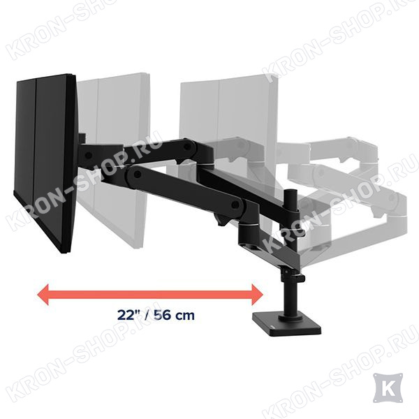 Запатентованная технология Constant Force (CF) позволяет изменять положение монитора минимальным усилием руки. Звенья крепления Ergotron LX Pro Dual Stacking Arm (45-690-292) складываются и придвигаются практически вплотную к стене. Защелкивающаяся крышка-фиксатор кронштейна Ergotron LX Pro Dual Stacking Arm (45-690-292) предохраняет от случайного снятия. Зажим-струбцина гарантируют ещё большую надёжность и стабильность при монтаже на поверхность. Специальные клипсы помогают поддерживать провода в кабельном канале, а значит на вашем рабочем месте будет порядок.