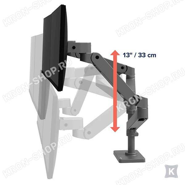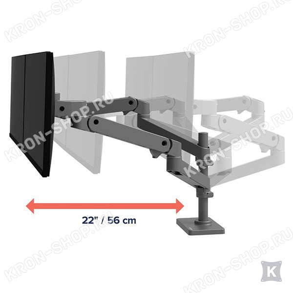 Запатентованная технология Constant Force (CF) позволяет изменять положение монитора минимальным усилием руки. Звенья крепления Ergotron LX Pro Dual Stacking Arm (45-690-293) складываются и придвигаются практически вплотную к стене. Защелкивающаяся крышка-фиксатор кронштейна Ergotron LX Pro Dual Stacking Arm (45-690-293) предохраняет от случайного снятия. Зажим-струбцина гарантируют ещё большую надёжность и стабильность при монтаже на поверхность. Специальные клипсы помогают поддерживать провода в кабельном канале, а значит на вашем рабочем месте будет порядок.