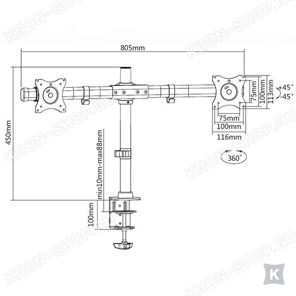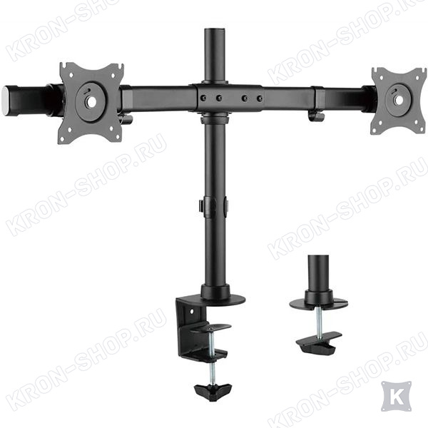 Настольный панорамный поворотно-наклонный кронштейн для двух мониторов с диагональю до 27 дюймов.