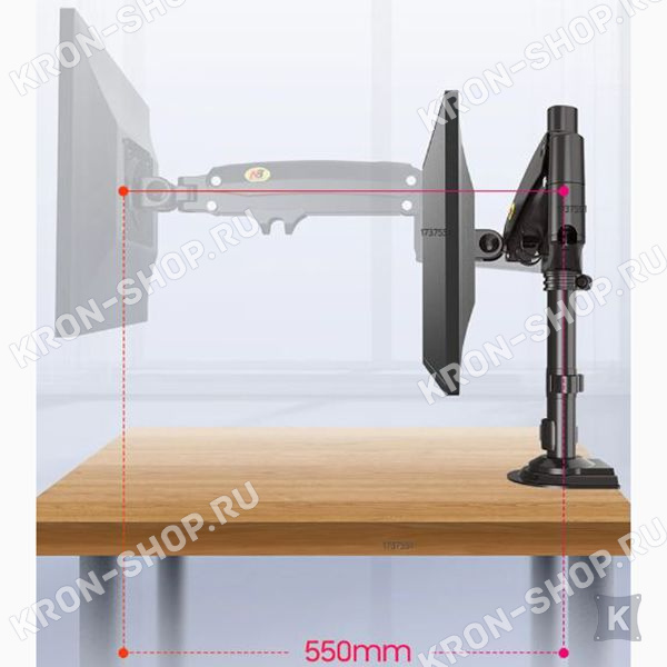 Газовая пружина обеспечивает плавное движение монитора вверх и вниз, а так же делает возможность фиксировать монитор в любом промежуточном положении