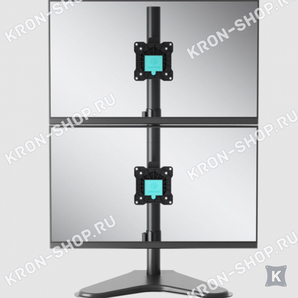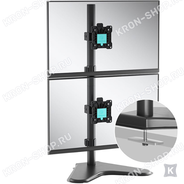 Настольный поворотно-наклонный кронштейн для двух мониторов с диагональю до 30 дюймов, установленных вертикально друг над другом.