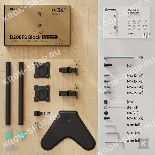Настольный кронштейн Onkron D208FS рассчитан на установку на любых столах и поверхностях, толщиной не более 60 мм, двух телевизоров и мониторов диагональю от 10" до 32".