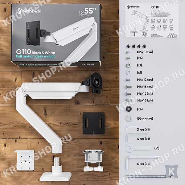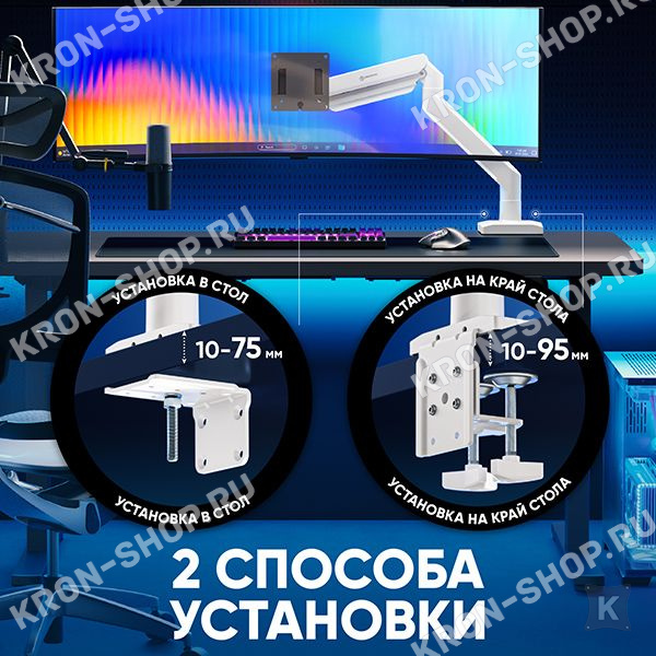 Кронштейн Onkron G110-BW предназначен для лёгкой установки на столешницу стола дома или в офисе. Один из основных плюсов его в том, что прикрепить к столешнице его можно любым из двух удобных для Вас способов: