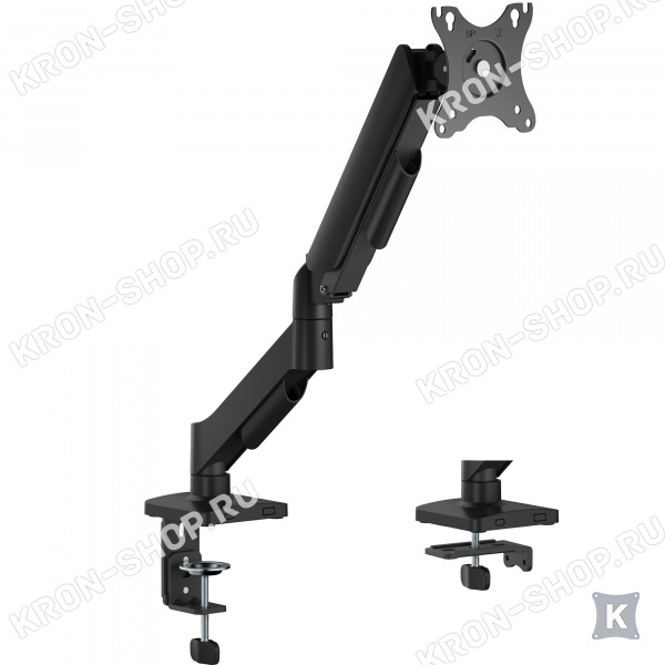 Настольный наклонно-поворотный кронштейн с регулировкой высоты для мониторов с диагональю экрана от 17 до 27 дюймов и весом до 7 кг.