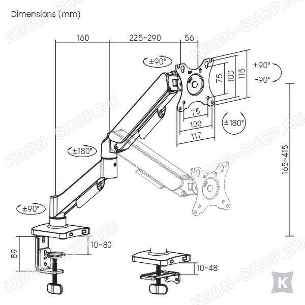Кронштейн Ultramounts UM739 позволяет легко и плавно изменять ориентацию монитора вертикально / горизонтально за счёт газового амортизатора, который настраивается под вес любого монитора. Монитор дополнительно можно наклонять, поворачивать и вращать на 360°.