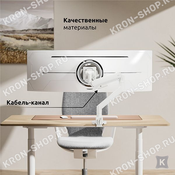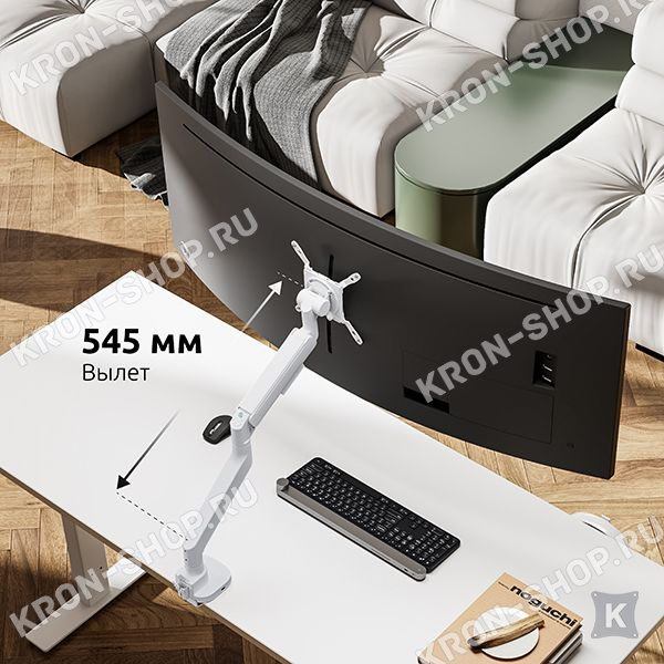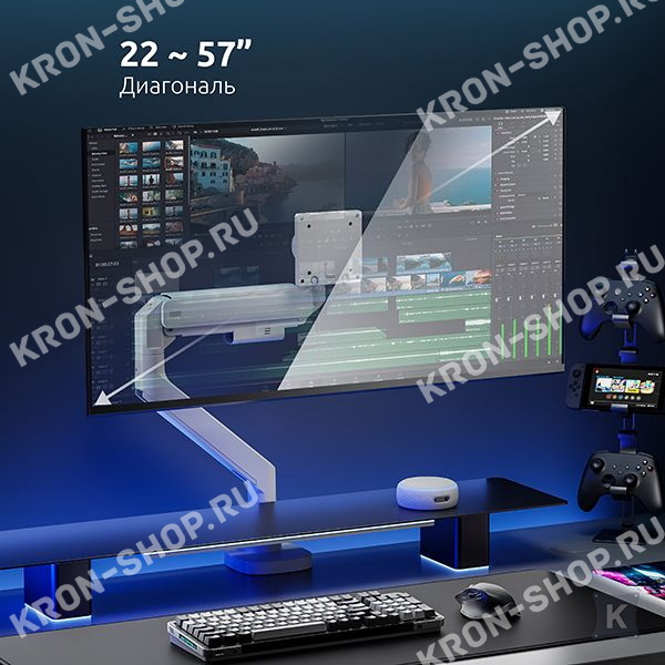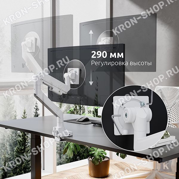 Настольный наклонно-поворотный кронштейн с регулировкой высоты для мониторов с диагональю до 57 дюймов.