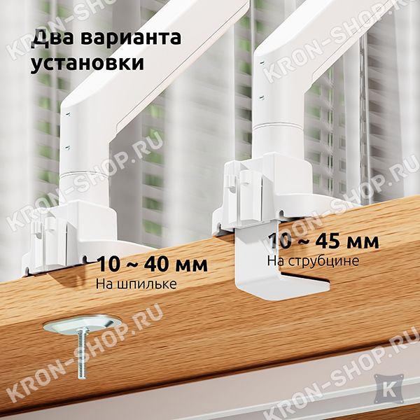 Кронштейн Uniteki FMGT201WRD предназначен для лёгкой установки на столешницу стола дома или в офисе. Один из основных плюсов его в том, что прикрепить к столешнице его можно любым из двух удобных для Вас способов: