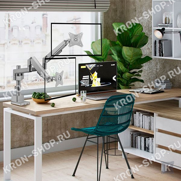 Настольный наклонно-поворотный кронштейн с регулировкой высоты для двух мониторов с диагональю до 34 дюймов.