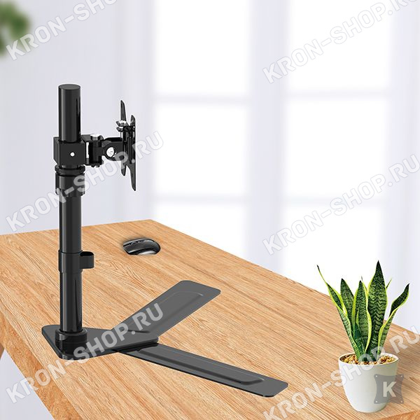 Настольный наклонно-поворотный кронштейн с регулировкой высоты для мониторов с диагональю экрана от 17 до 32 дюймов и весом до 9 кг.