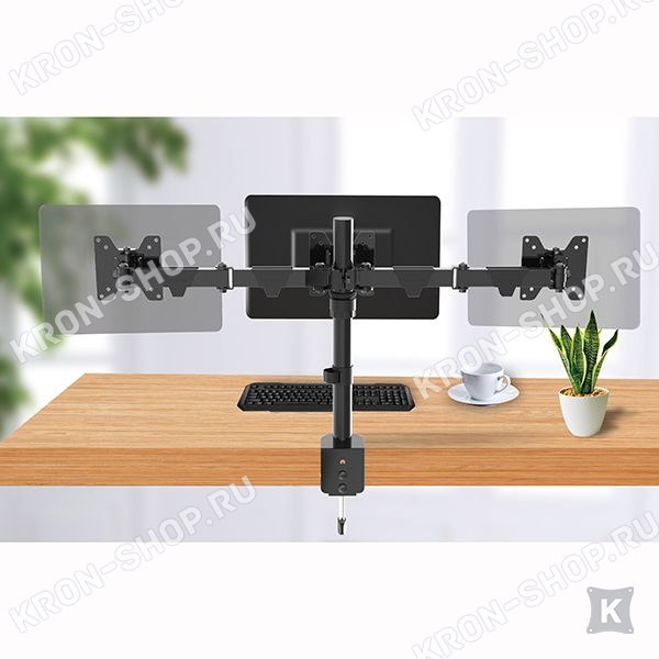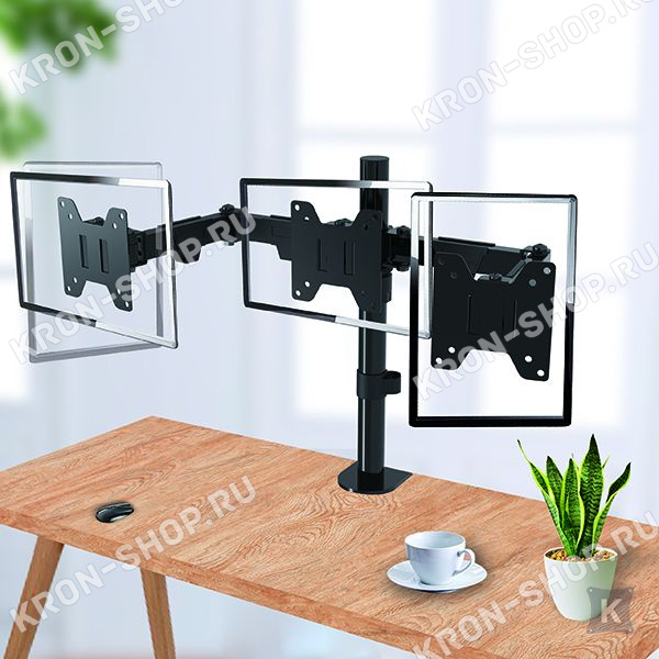 Настольный наклонно-поворотный кронштейн для трёх мониторов с диагональю до 32 дюймов включительно с регулировкой по высоте.