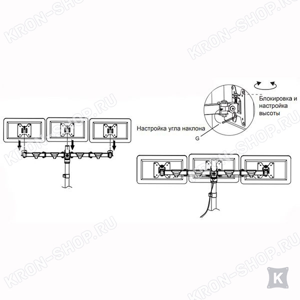 - Мониторы наклоняются на +°/-60° вверх/вниз;