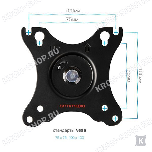 Крепежные отверстия соответствуют стандартам VESA 75×75 мм и 100×100 мм.