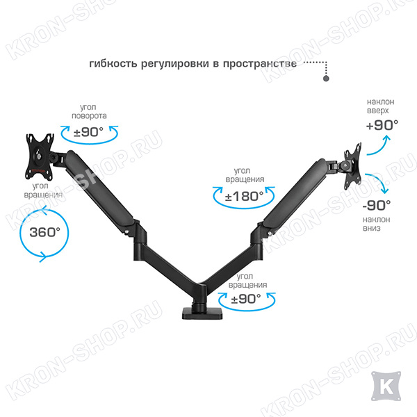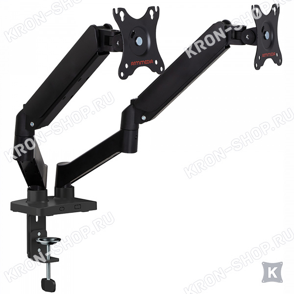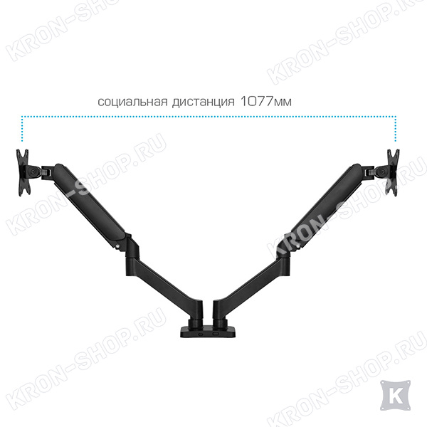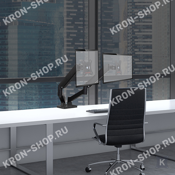 Настольный панорамный поворотно-наклонный кронштейн для двух мониторов с диагональю до 32 дюймов включительно c возможностью регулировки по высоте.