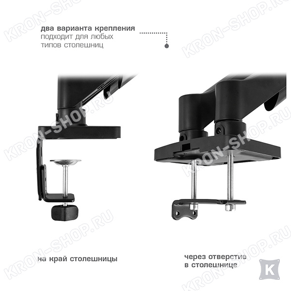 Кронштейн Arm-Media LCD-T23 предназначен для лёгкой установки на столешницу стола дома или в офисе. Один из основных плюсов его в том, что прикрепить к столешнице его можно любым из двух удобных для вас способов:
