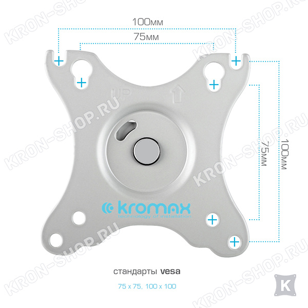 Крепежные отверстия соответствуют стандартам VESA 75x75 мм и 100x100 мм.