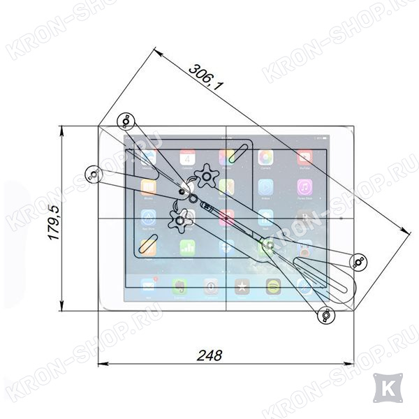 Настенный кронштейн- адаптер для планшета ARTKRON Pad GT-46 совместим со всеми портативными популярными устройствами размерами по ширине от 195 мм до 248 мм и по высоте от 134 до 179 мм.