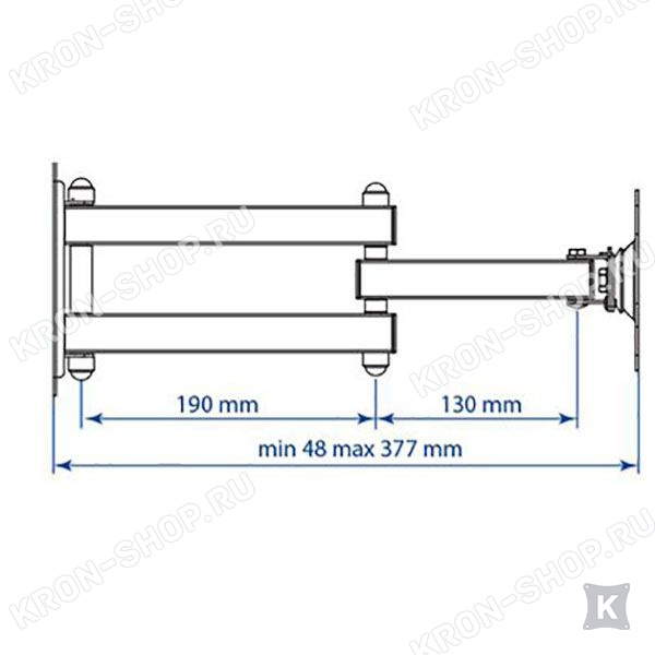 Кронштейн ARTKRON Pad-25 предлагает широкий диапазон настроек. Горизонтальный вынос крепления варьируется от 50 до 377 мм, что позволяет выбрать оптимальное расстояние от стены до планшета. Угол наклона может достигать 15 градусов, а возможность поворота на 180 градусов позволяет разместить планшет под любым углом.