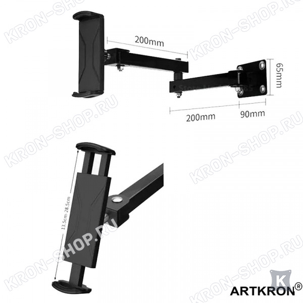 Многофункциональный регулируемый настенный кронштейн ARTKRON Pad WTR-54 предполагает альтернативное размещение на стене, столе либо любой другой плоской поверхности. Идеально подходит для Apple Ipad Mini, Samsung Galaxy Tab, Lenovo IdeaTab и других производителей планшетов с диагональю экрана 7"-13".