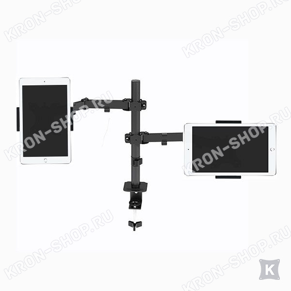 Настольное крепление для двух планшетов с размером экрана от 4 до 12 дюймов.