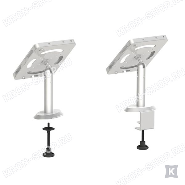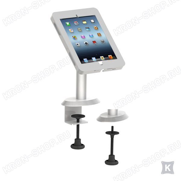 Настольная стойка для планшетов iPAD с диагональю экрана 10,5 дюймов. Основание может крепиться к столу или другой поверхности двумя способами: струбциной за край стола или винтом через отверстие в поверхности