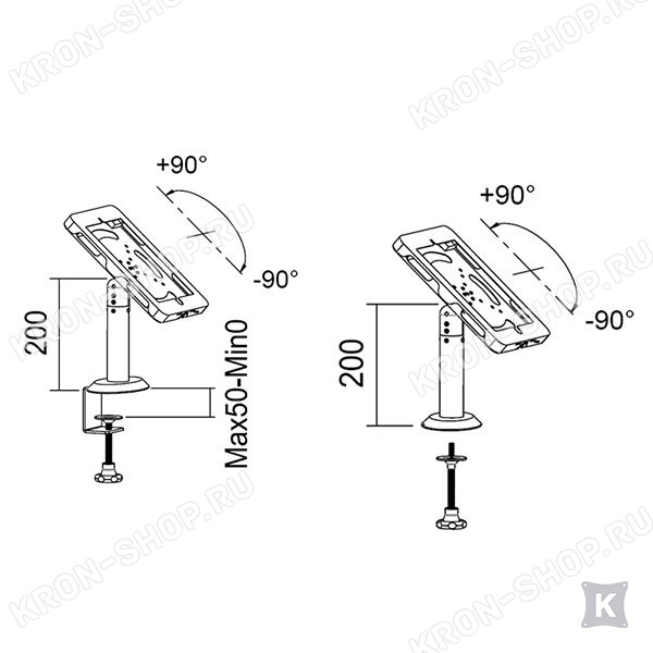 Настольный кронштейн MiniFit S200 под планшет iPAD 10.5 позволяет регулировать его наклон на ±90° и вращение на 360°, что бы установить экран в удобное положение для пользователя. На основание кронштейна устанавливается корпус для планшета, изготовленный из металла и оснащенный замком, для предотвращения кражи и несанкционированного доступа. Основание может крепиться к столу или другой поверхности двумя способами: струбциной за край стола или винтом через отверстие в поверхности. Кейс для планшета можно использовать без кронштейна, просто прикрутить его к поверхности или даже стене или столу. Высота стойки 200 мм. Можно использовать для операторов для дополнительной информации или для информирования посетителей, а так же много других областей для применения.