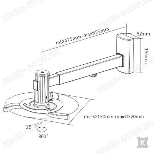 Универсальное телескопическое настенное крепление для короткофокусных проекторов весом до 10 кг.