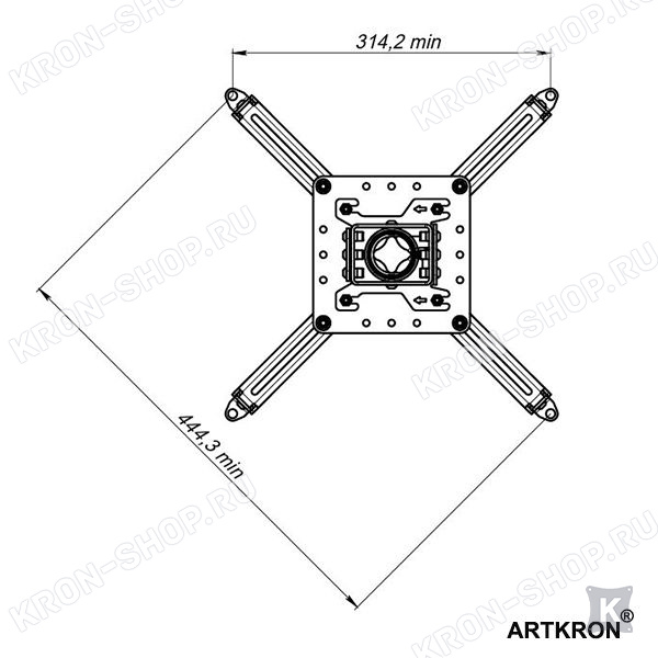 - Максимальный размах крепёжных "лапок" – 571 мм.
