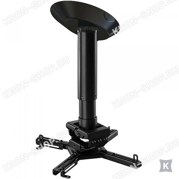 Универсальное потолочное крепление в чёрном цвете для проекторов весом до 35 кг c регулируемым расстоянием от потолка до проектора в пределах от 120 до 180 см.