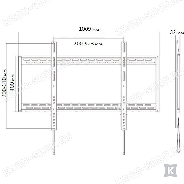 Кронштейн FIX LP37-69F позволяет располагать телевизор максимально близко к стене – 32 мм, максимальная нагрузка – 100 кг. В то же время сохраняется необходимое расстояние для подключения кабелей и штекеров, а также для розетки, в случае если она расположена за телевизором.