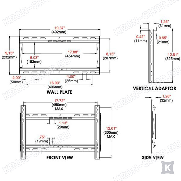 Настенный фиксированный кронштейн для телевизоров и мониторов с диагональю от 32 до 46 дюймов.