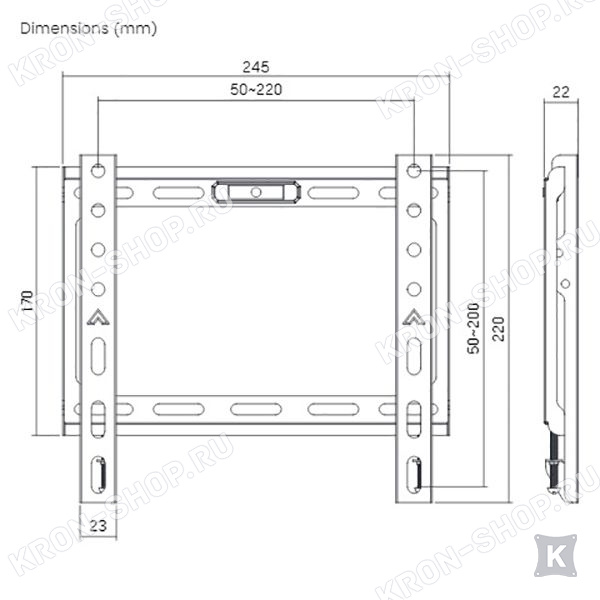 Настенный фиксированный кронштейн с минимальным расстоянием до стены для телевизоров с диагональю от 26 до 65 дюймов.