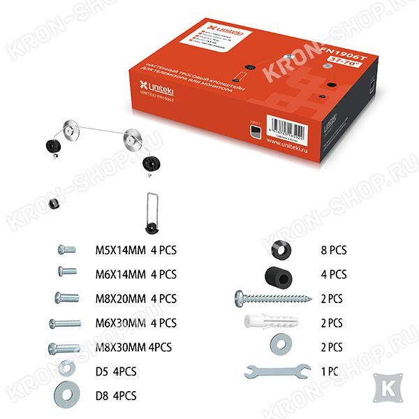 Кронштейн Кронштейн FN1906T позволяет располагать телевизор максимально близко к стене. В основе кронштейна использована тросовая система крепления, которая позволяет разместить телевизор с минимальным расстоянием от стены.