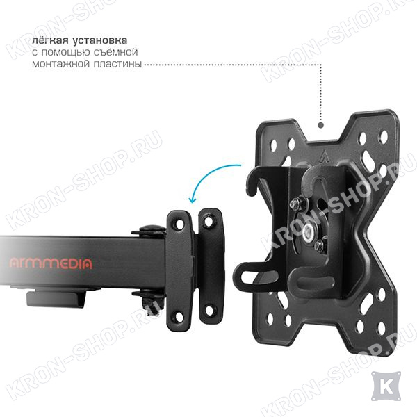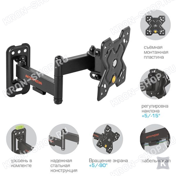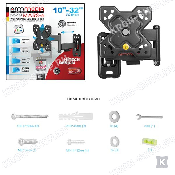 Кронштейн Arm-Media MARS-6 является оптимальным вариантом шарнирного кронштейна небольшого размера и отличается оптимальной подвижностью, надежностью и неповторимым оригинальным внешним видом.