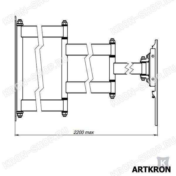 Ультратонкое 4-х коленное настенное крепление ARTKRON LD-2200 подходит для телевизоров от 26 до 46" , весом до 20 кг.