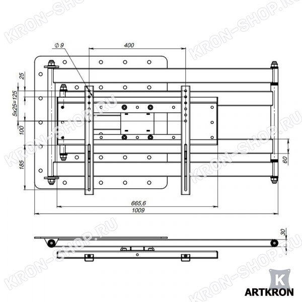 Кронштейн ARTKRON LD-2200 позволяет вращать телевизор в любых направлениях, а также вешать телевизор на угол.