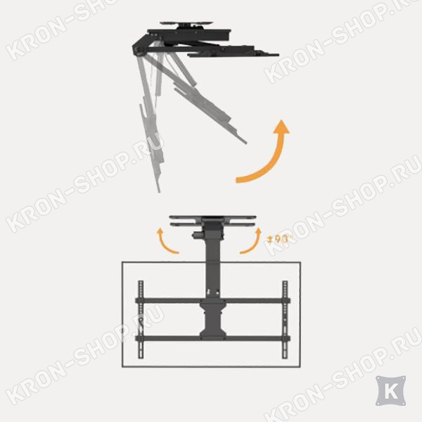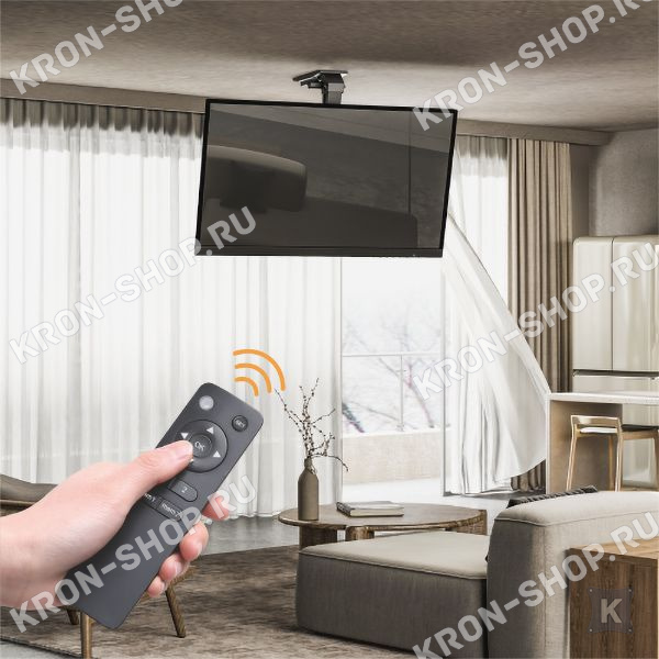 Потолочный моторизированный поворотно-откидной кронштейн для телевизоров и мониторов с диагональю от 43 до 86 дюймов.