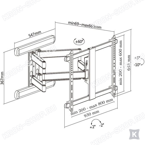 Поворотно-наклонный кронштейн Exell EXi-X9086 для телевизоров с диагональю 49–90 дюймов использует инновационные материалы и продвинутые технические решения. Благодаря этому он не только выдерживает вес до 90 кг, что гарантирует безопасность, но и обеспечивает полный диапазон движений, включая выдвижение от 69 до 660 мм, наклон -10°/+5°, поворот ±60°, коррекцию уровня ±2°. Выдвигать или складывать кронштейн еще никогда не было так просто – улучшенная конструкция со встроенными медными втулками двигается максимально плавно. Два многофункциональных кабельных зажима элегантно скрывают, защищают и поддерживают кабели.