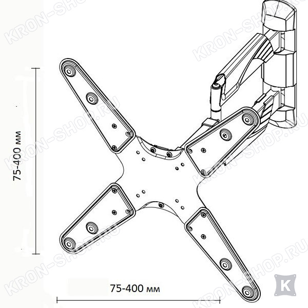 Настенный поворотно-наклонный кронштейн для телевизоров и мониторов с диагональю от 22 до 42 дюймов.