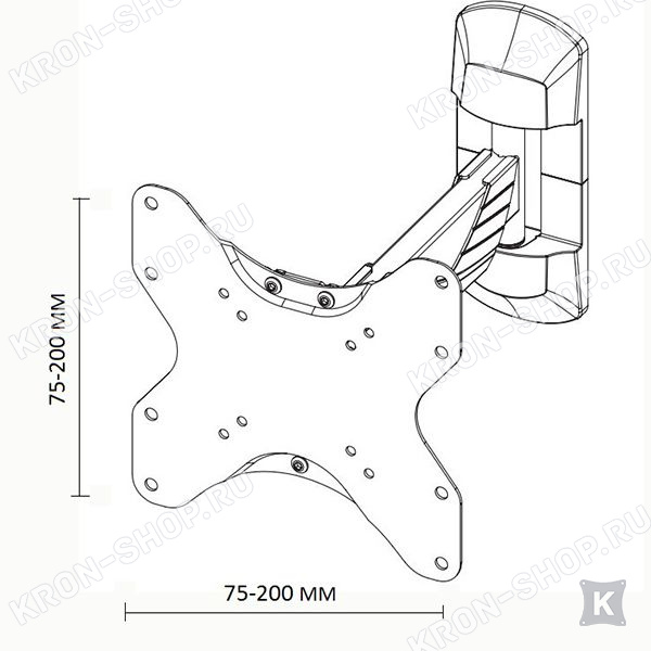 Настенный наклонно-поворотный кронштейн для телевизоров и мониторов с диагональю от 20 до 55 дюймов.