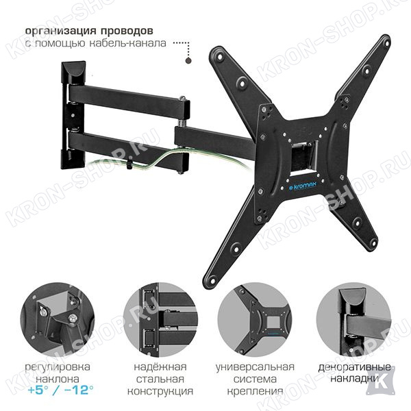 Настенный поворотно-наклонный кронштейн для телевизоров и мониторов с диагональю от 17 до 42 дюймов.