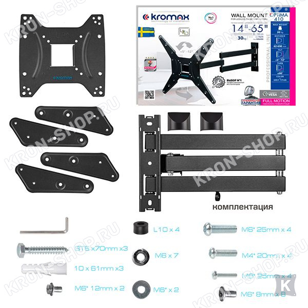Кронштейн Kromax Optima-410 идеален для установки телевизоров и мониторов с диагональю экрана от 14 до 65 дюймов. Кронштейн Kromax Optima-410 позволяет регулировать углы наклона и поворота.