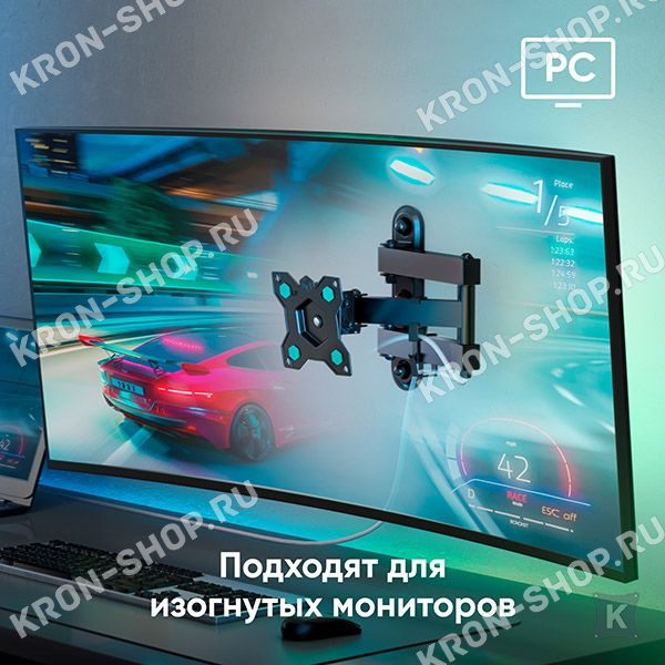 Настенный поворотно-наклонный кронштейн для телевизоров и мониторов с диагональю от 13 до 27 дюймов.