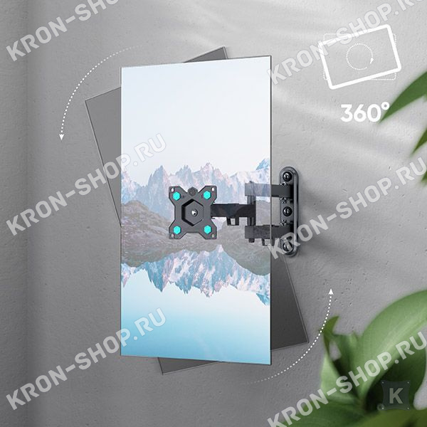 Настенный поворотно-наклонный кронштейн для телевизоров и мониторов с диагональю от 10 до 35 дюймов с возможностью вращения 360 градусов.