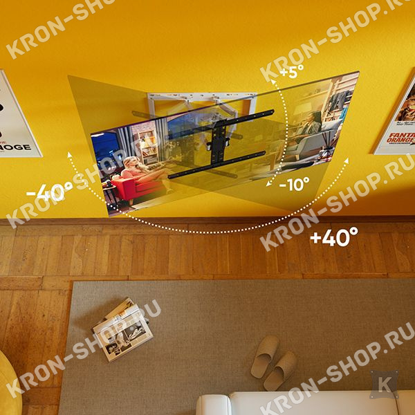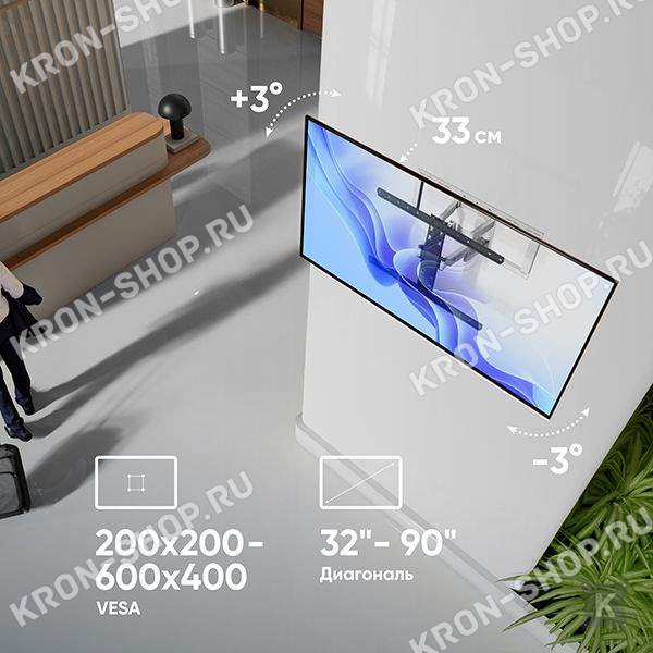 Настенный поворотно-наклонный кронштейн для телевизоров и мониторов с диагональю от 32 до 90 дюймов.