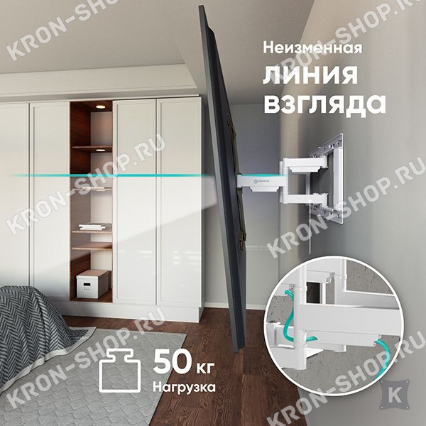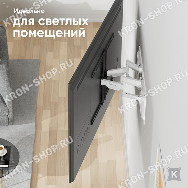 Сохраняя все преимущества и функциональность шарнирных кронштейнов, кронштейн Onkron SM6W отличается особой прочностью и надёжностью, изящным дизайном, исключительной маневренностью и новой быстрой системой сборки. Широкие возможности по повороту, наклону, перемещению в различных направлениях, а также изменение угла наклона экрана дают возможность устранить блики и обеспечить максимальный комфорт и удобство при просмотре с любой точки. Регулировка наклона осуществляется лёгким прикосновением.