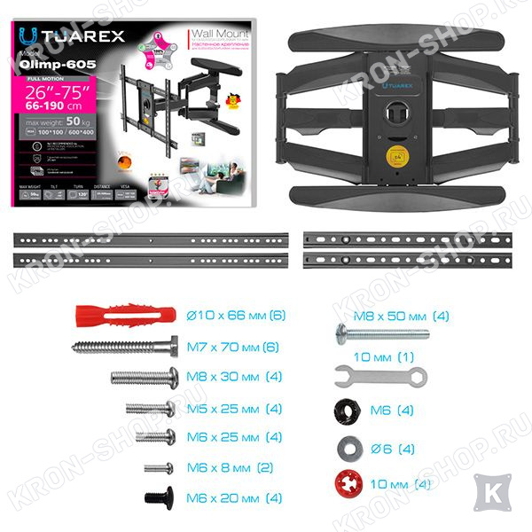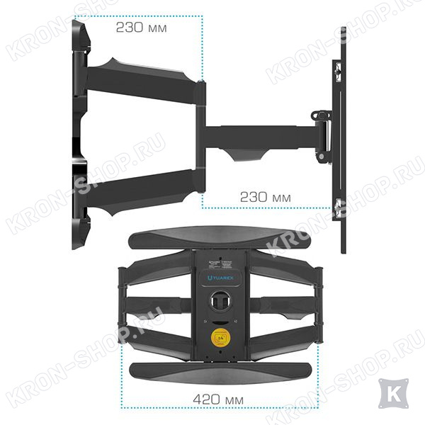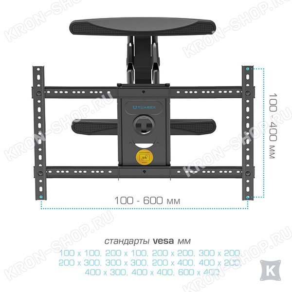 Кронштейн Tuarex Olimp-605 является практичным решением шарнирного кронштейна с улучшенными функциональными возможностями для средних размеров плоских телевизионных панелей.