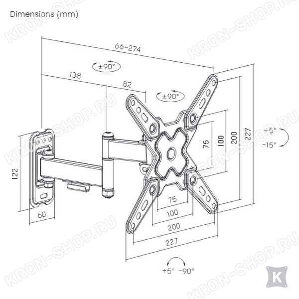 Настенный наклонно-поворотный кронштейн для телевизоров и мониторов с диагональю от 15 до 55 дюймов.