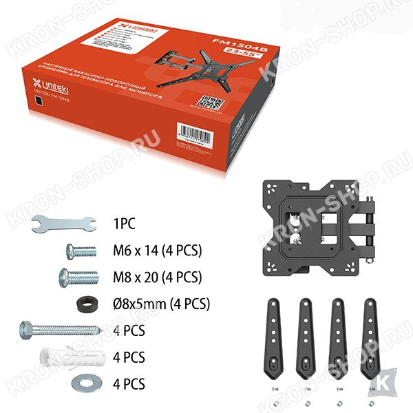 Регулируемое расстояние от стены до панели, несколько степеней свободы (наклон, поворот, сдвиг), простота и совершенство модели Uniteki FM1504B сделали его максимально удобным и доступным для наших покупателей.