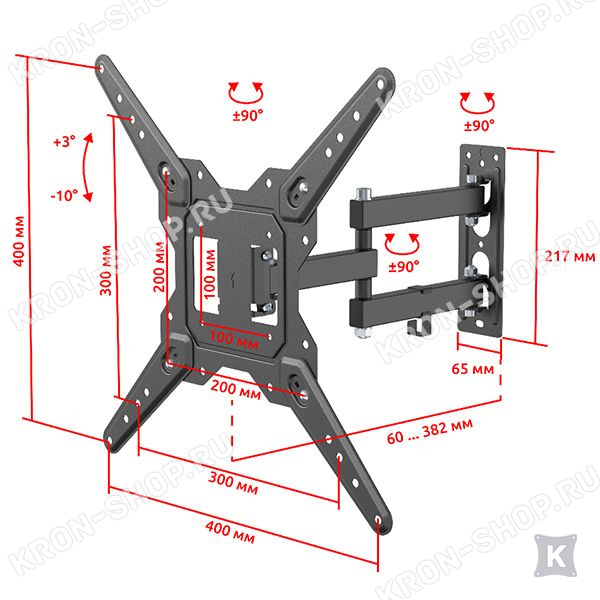 Настенный поворотно-наклонный кронштейн для телевизоров и мониторов с диагональю от 23 до 55 дюймов.